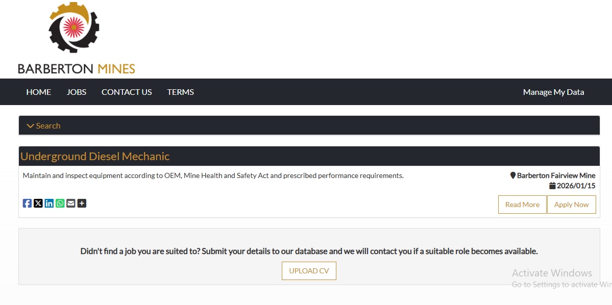Applications are accepted exclusively online. Candidates must visit the official Barberton Mines recruitment portal. The specific URL for applications is: